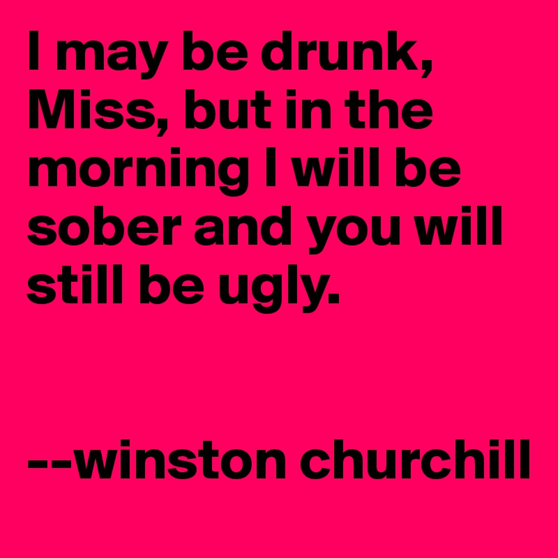 I may be drunk Miss but in the morning I will be sober and you will still be ugly GETTY IMAGES My dear you are ugly. Winston Churchill Funny Morning Drunk Will Sober Quotes to Explore I refuse to join any club that would have me as a member. We can help you.
